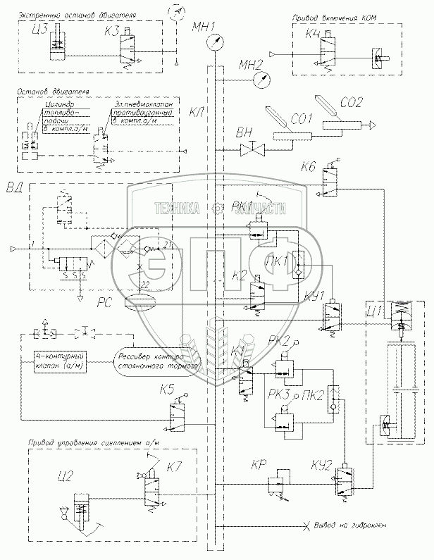 Каталог запасных частей к технике: ЕлАЗ АПР-60/80. Схема пневматическая принципиальная
