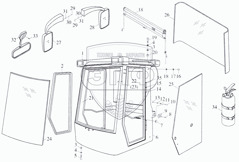 Каталог запасных частей к технике: Foton-FL936F. Кабина