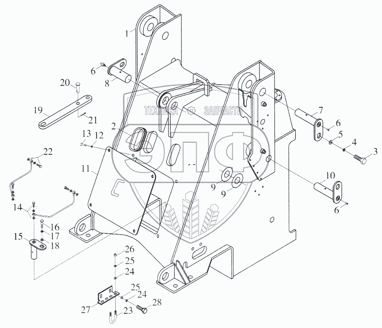 Каталог запасных частей к технике: Foton-FL936F. Полурама передняя