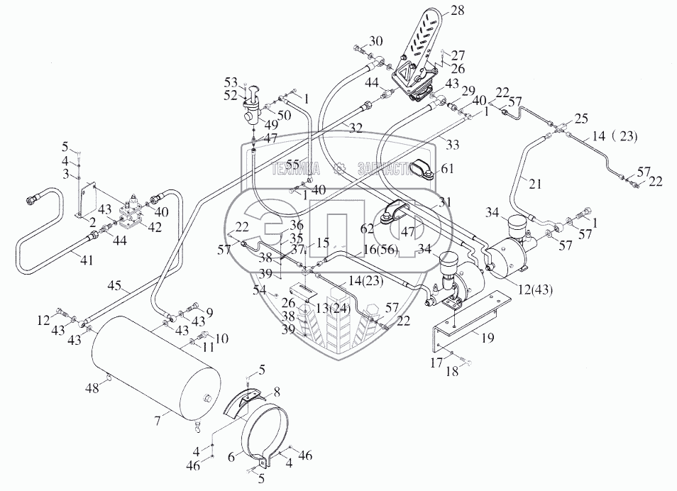 Каталог запасных частей к технике: Foton-FL936F. Система тормозная