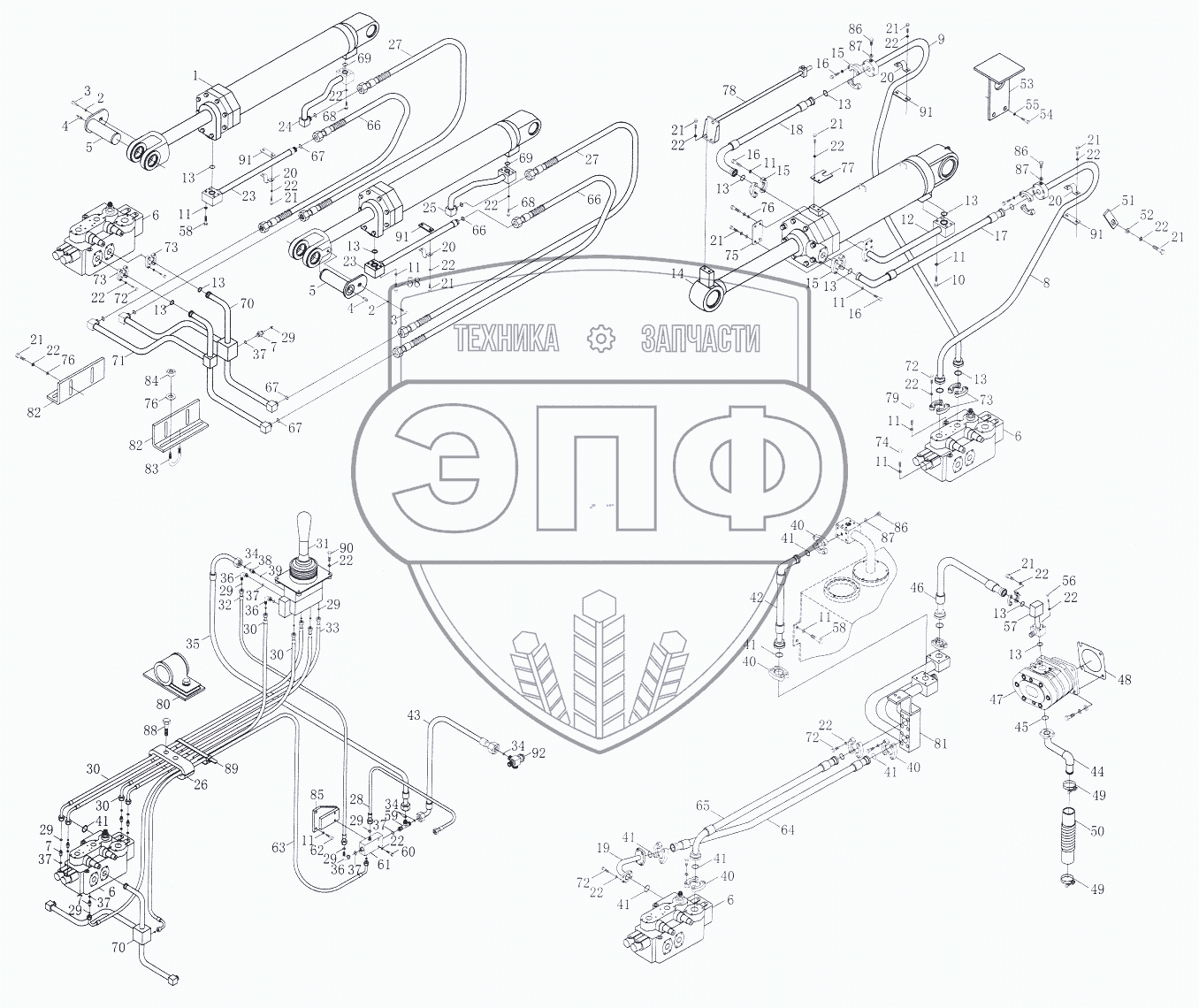 Каталог запасных частей к технике: Foton-FL958G. Гидравлическая система рабочей аппаратуры