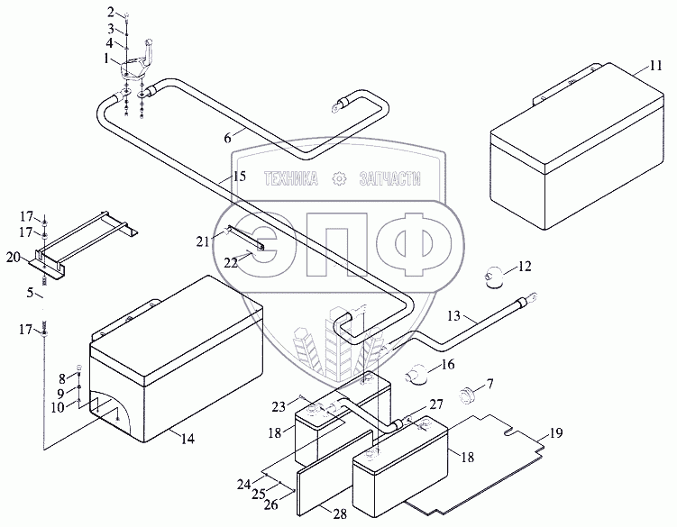| 13 | 9F820-6504000 | Кабель катода аккумулятора | Нет на складе | |