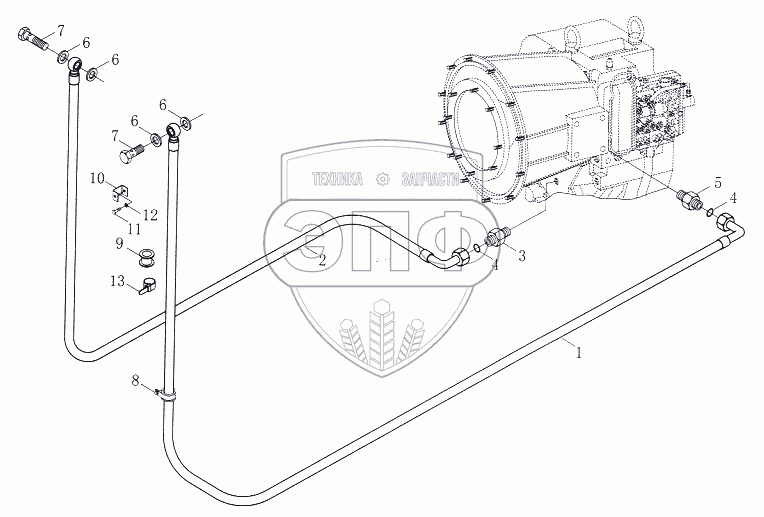 Каталог запасных частей к технике: Foton-FL958G. Приводная масляная линия