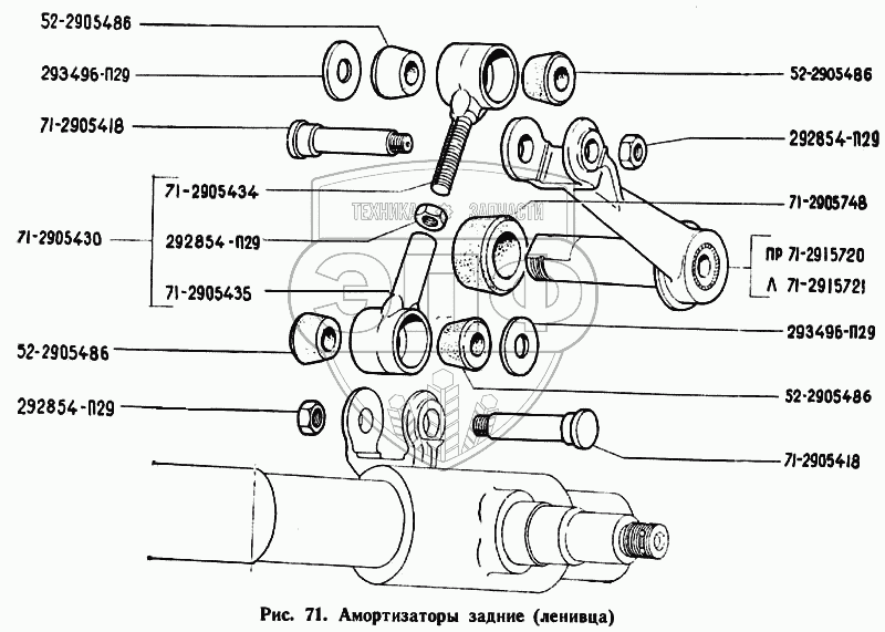 Каталог запасных частей к технике: ГАЗ-71. Амортизаторы задние (ленивца)