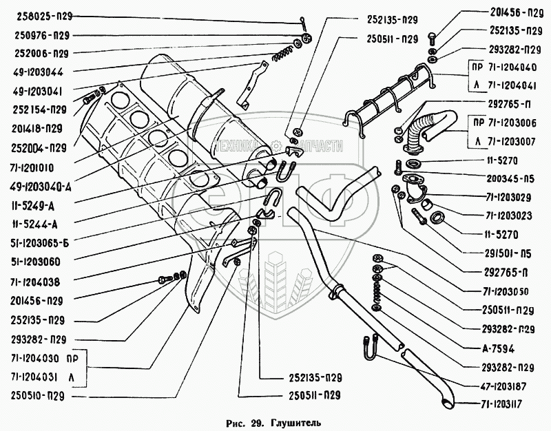 Каталог запасных частей к технике: ГАЗ-71. Глушитель