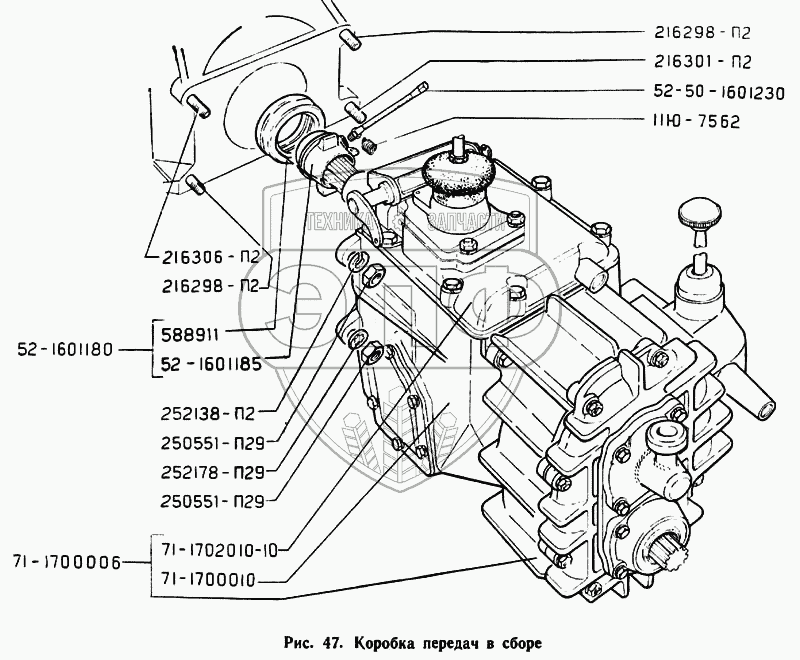 Каталог запасных частей к технике: ГАЗ-71. Коробка передач в сборе