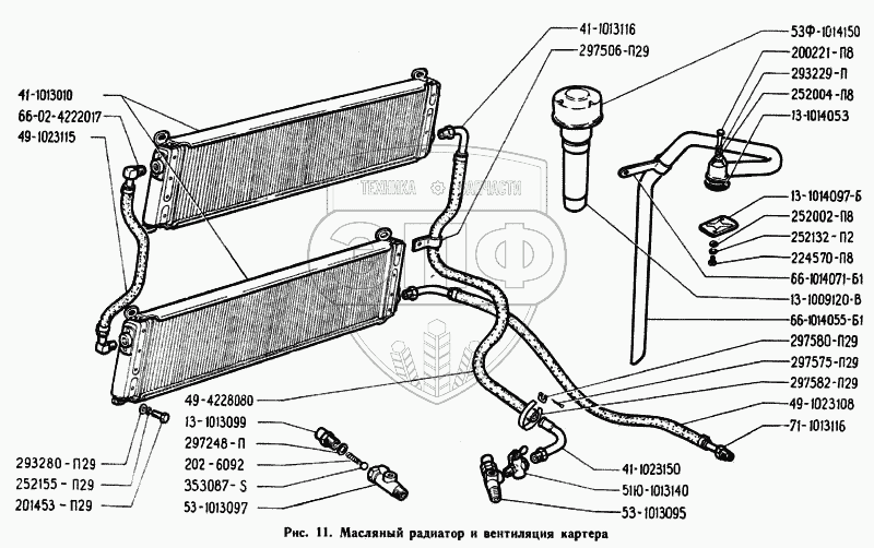 Каталог запасных частей к технике: ГАЗ-71. Масляный радиатор и вентиляция картера