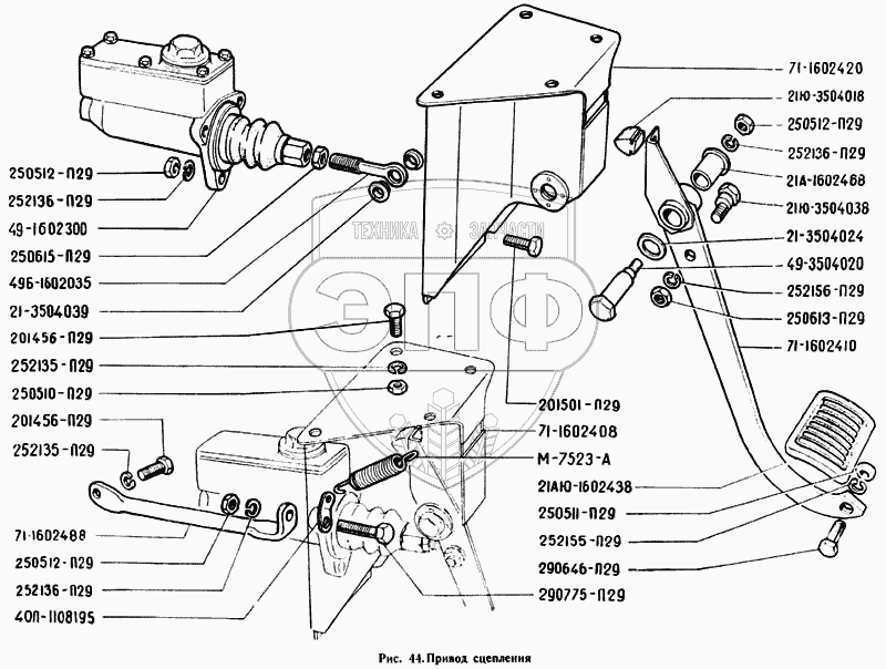 Каталог запасных частей к технике: ГАЗ-71. Привод сцепления