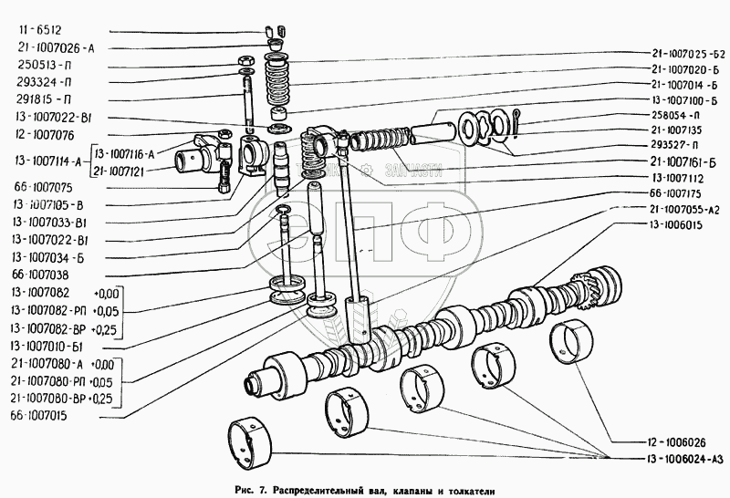 Каталог запасных частей к технике: ГАЗ-71. Распределительный вал. Клапаны и толкатели
