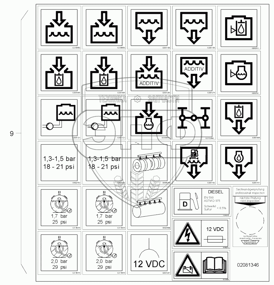 Каталог запасных частей к технике: HAMM HD110. STICKER ARRANGEMENT