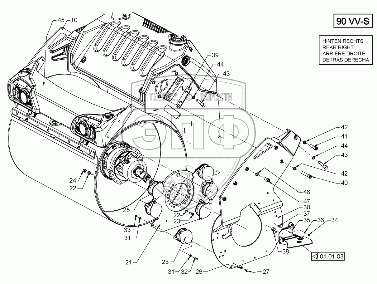 Каталог запасных частей к технике: HAMM HD110. SUSPENSION (ROLLER DRUM REAR)