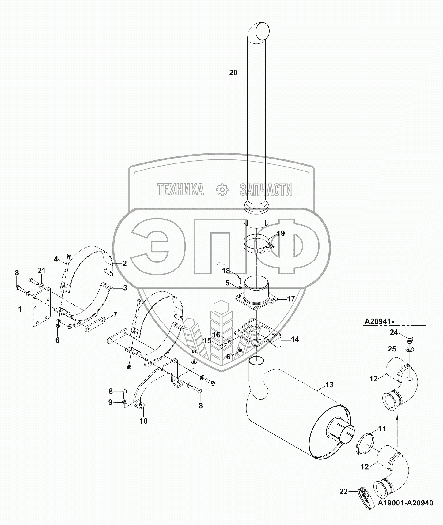 Каталог запасных частей к технике: Hidromek 102B Maestro-ZF. EXHAUST ASSEMBLY A20906-