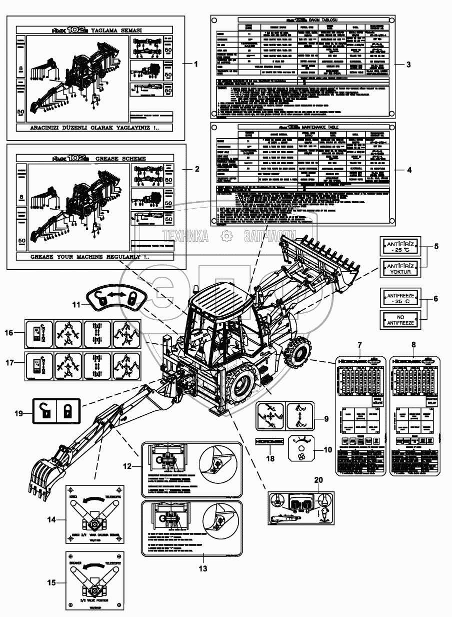 Каталог запасных частей к технике: Hidromek HMK 102B. DECAL AND PLATES, OPERATING & MAINTENANCE