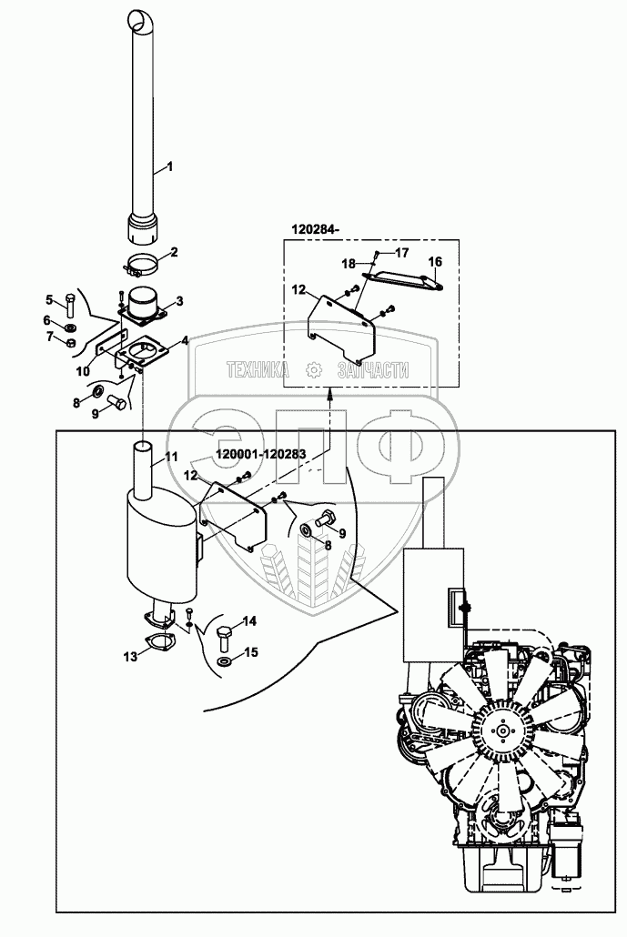 Каталог запасных частей к технике: Hidromek HMK 102S. EXHAUST ASSEMBLY - GREEN 2 ENGINE