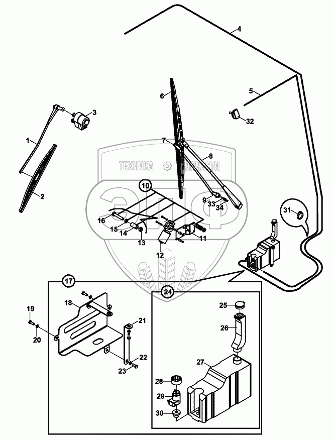 Каталог запасных частей к технике: Hidromek HMK 102S. WIPER SYSTEM