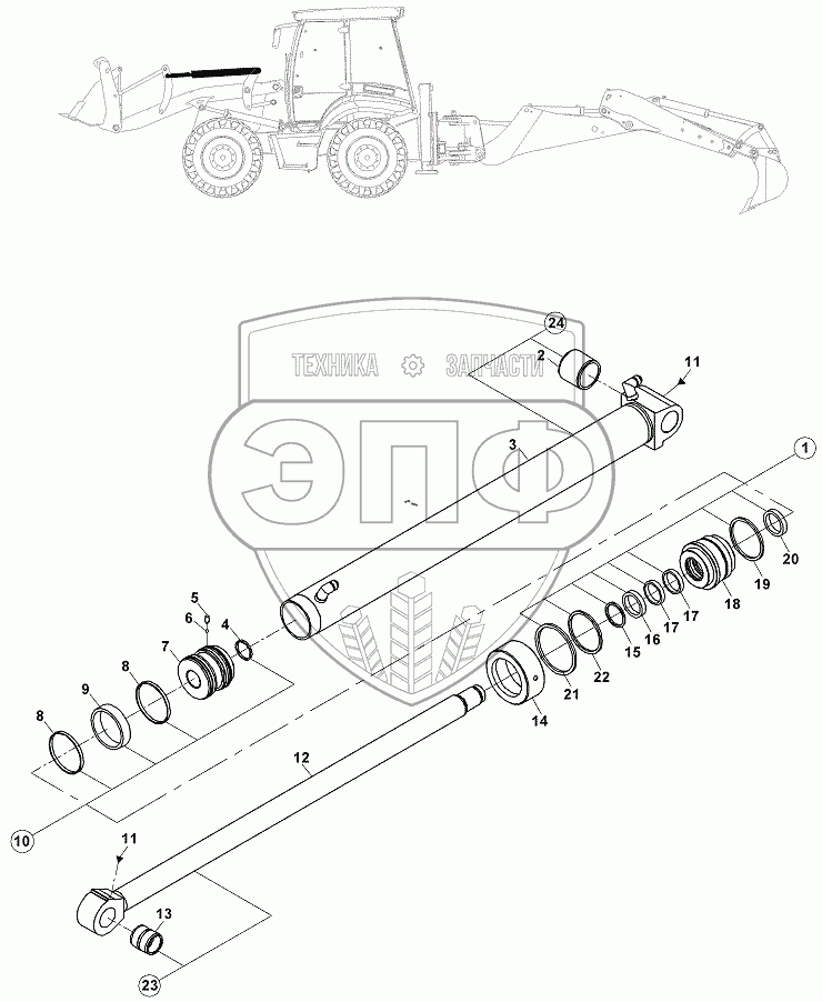 Каталог запасных частей к технике: Hidromek HMK 102S ALPHA. BUCKET CYLINDER, LOADER, LH