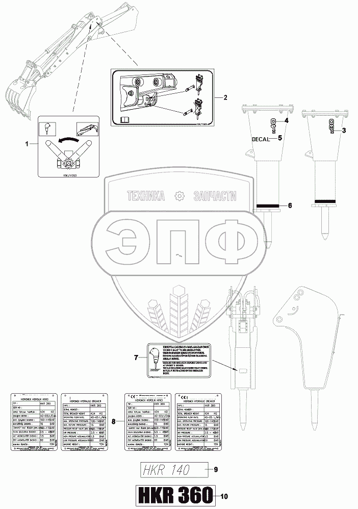 Каталог запасных частей к технике: Hidromek HMK 102S ALPHA. DECAL AND PLATES, BREAKER