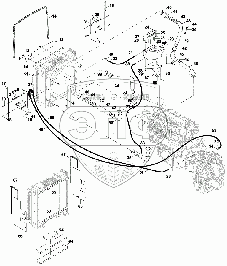 Каталог запасных частей к технике: Hidromek HMK 102S ALPHA. ENGINE COOLING MOUNTING