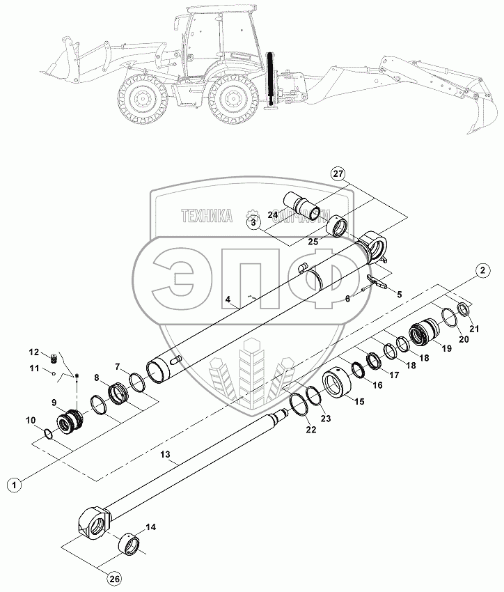 Каталог запасных частей к технике: Hidromek HMK 102S ALPHA. STABILIZER CYLINDER, LH