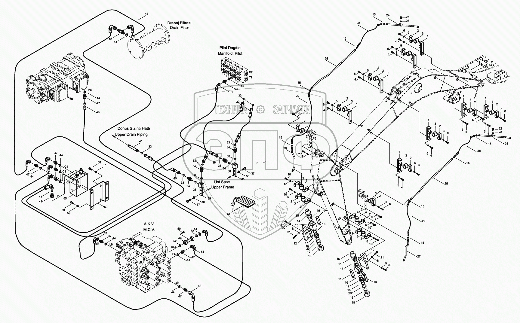 Каталог запасных частей к технике: Hidromek HMK 200W. BREAKER PIPING MOUNTING