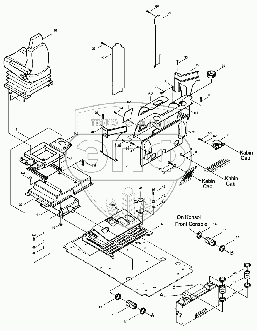 Каталог запасных частей к технике: Hidromek HMK 200W. CAB INTERIOR MOUNTING