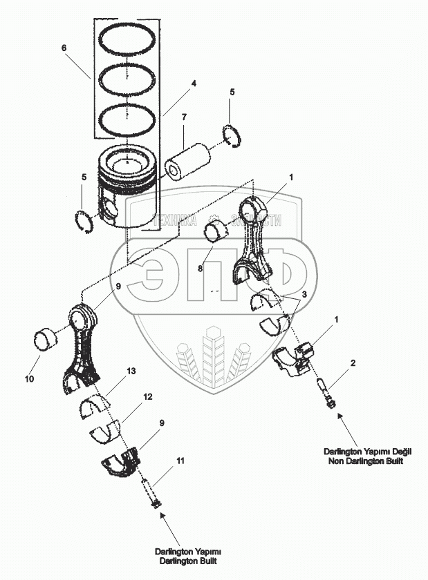 Каталог запасных частей к технике: Hidromek HMK 200W. CONNECTING ROD AND PISTON