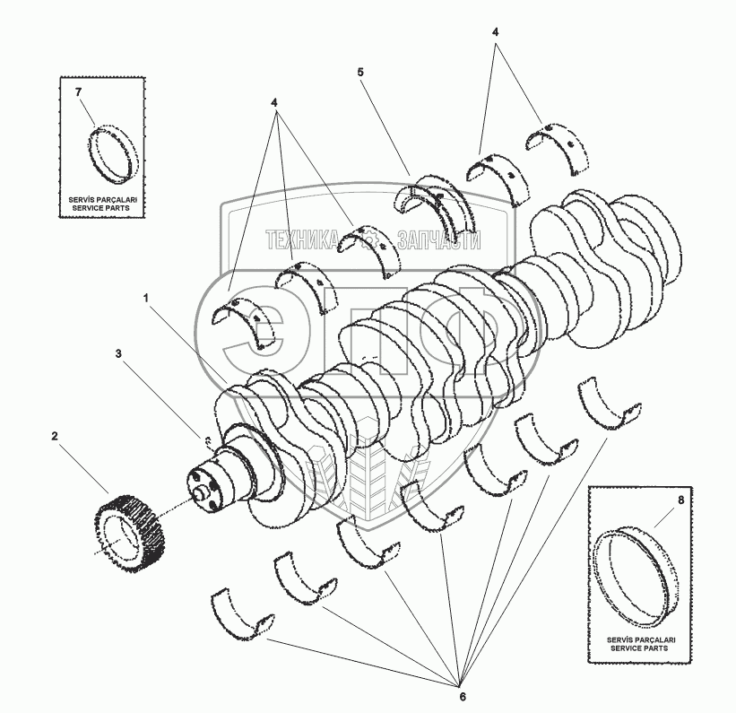 Каталог запасных частей к технике: Hidromek HMK 200W. CRANKSHAFT AND MAIN BEARING