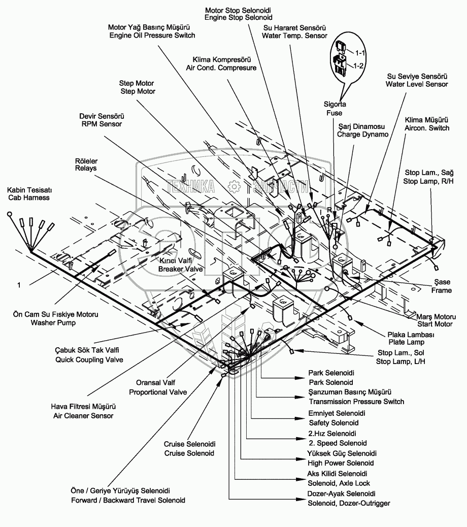 Каталог запасных частей к технике: Hidromek HMK 200W. ENGINE HARNESS