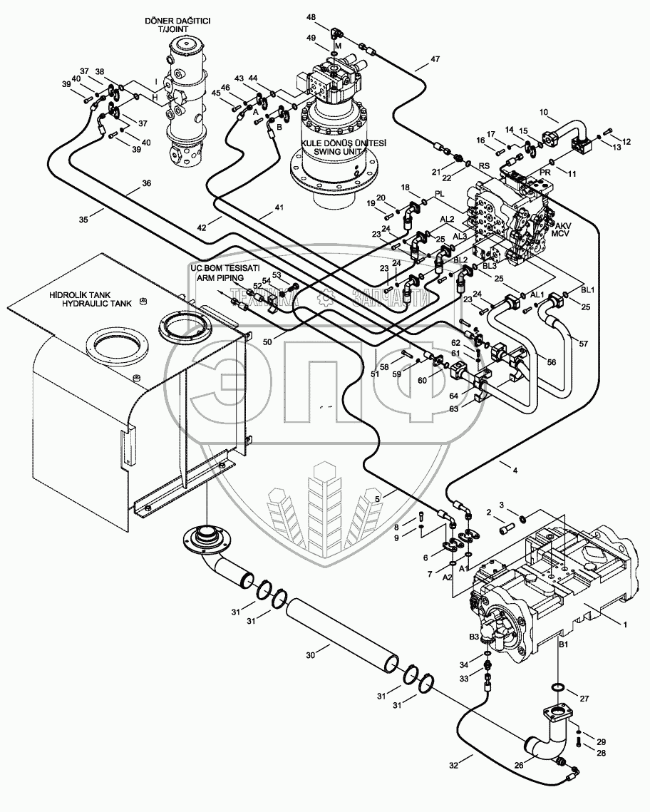 Каталог запасных частей к технике: Hidromek HMK 200W. MAIN PIPING MOUNTING L/H