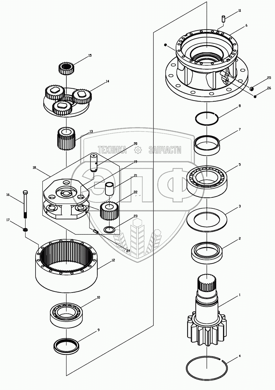 Каталог запасных частей к технике: Hidromek HMK 200W. REDUCTION GEAR-SWING UNIT