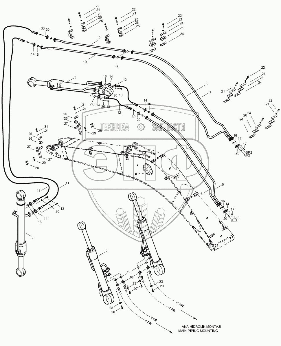 Каталог запасных частей к технике: Hidromek HMK 220LC-2. ATTACHMENT PIPING