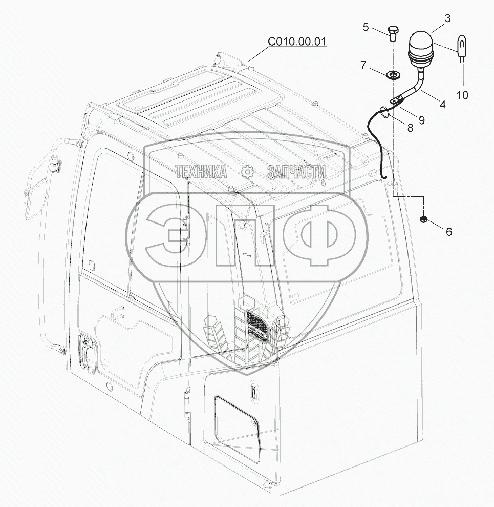 Каталог запасных частей к технике: Hidromek HMK 230LC3. BEACON LAMP MOUNTING (OP)