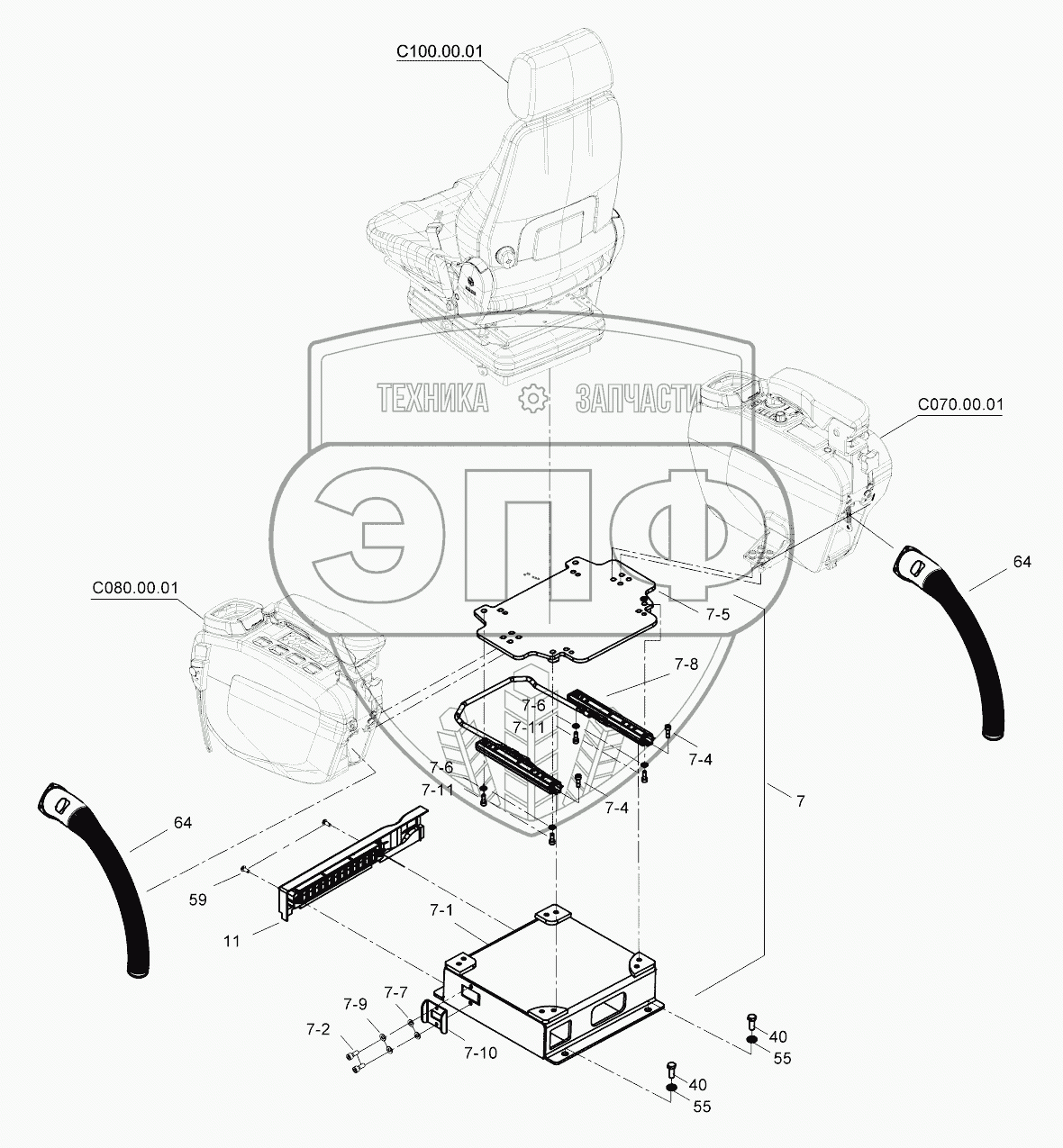 Каталог запасных частей к технике: Hidromek HMK 230LC3. OPERATOR SEAT MOUNTING