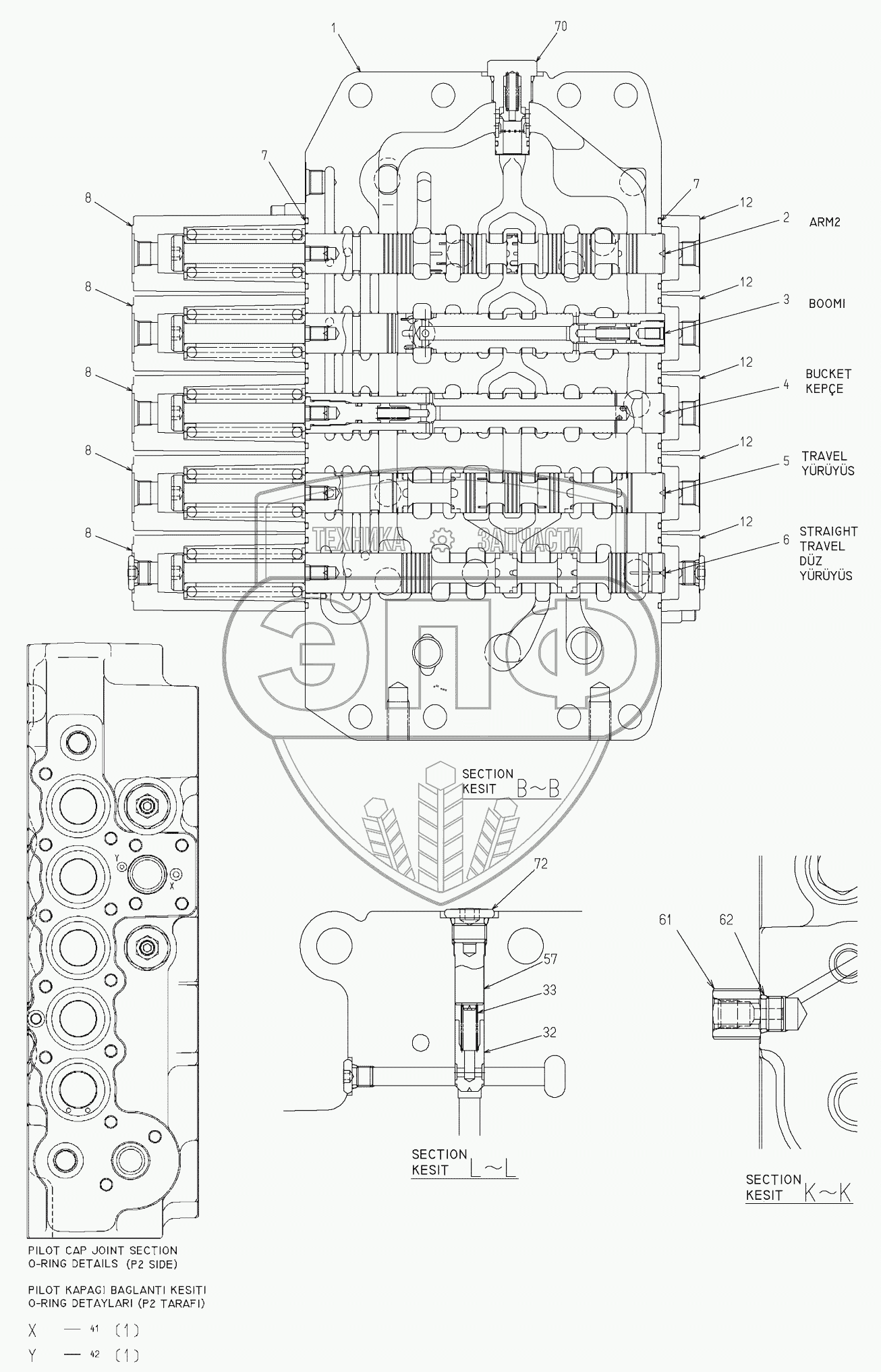 Каталог запасных частей к технике: Hidromek HMK 300LC. MAIN CONTROL VALVE (4)