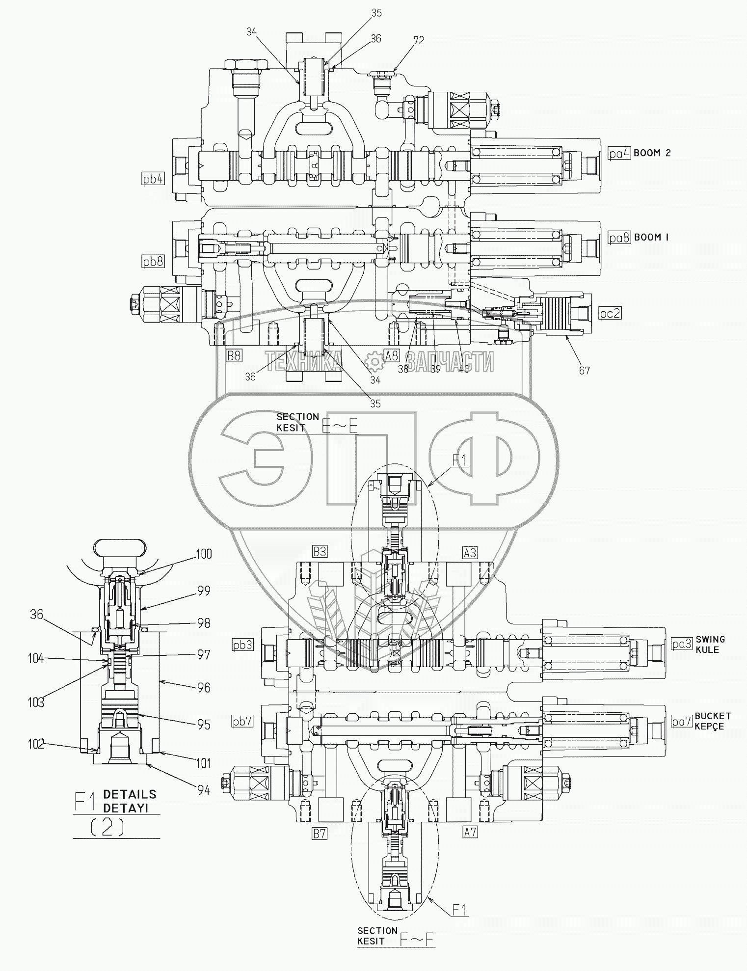 Каталог запасных частей к технике: Hidromek HMK 300LC. MAIN CONTROL VALVE (6)