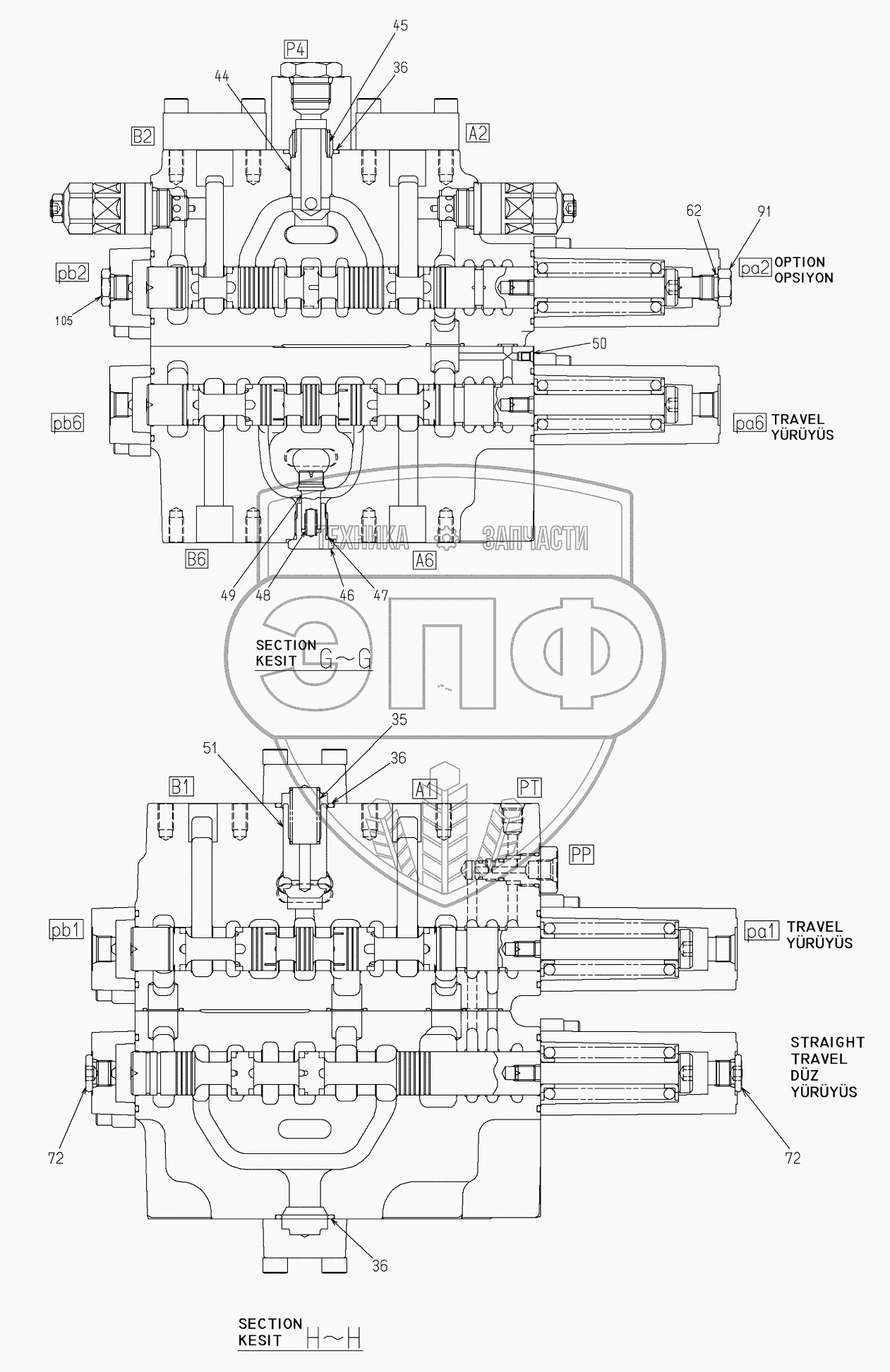 Каталог запасных частей к технике: Hidromek HMK 300LC. MAIN CONTROL VALVE (7)
