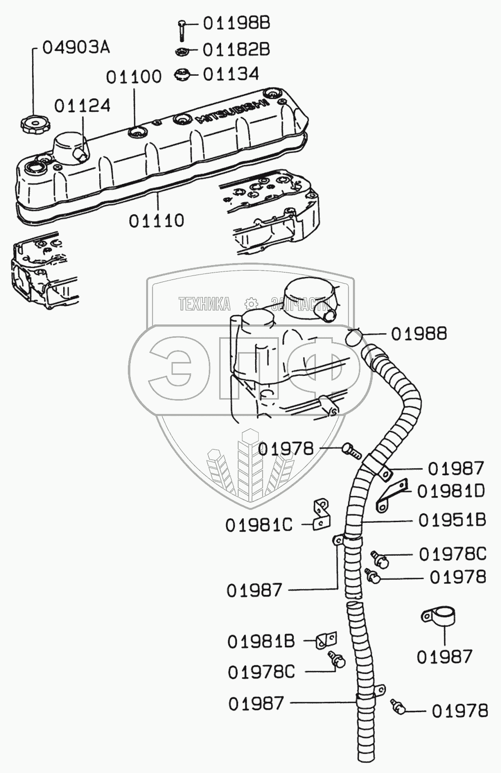 | 01951B | H252001800 | Hose, Eng. Breather | Нет на складе | |