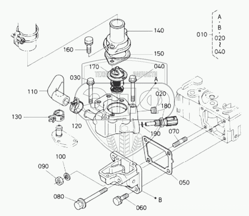 Каталог запасных частей к технике: Hidromek HMK 62SS. WATER FLANGE AND THERMOSTAT