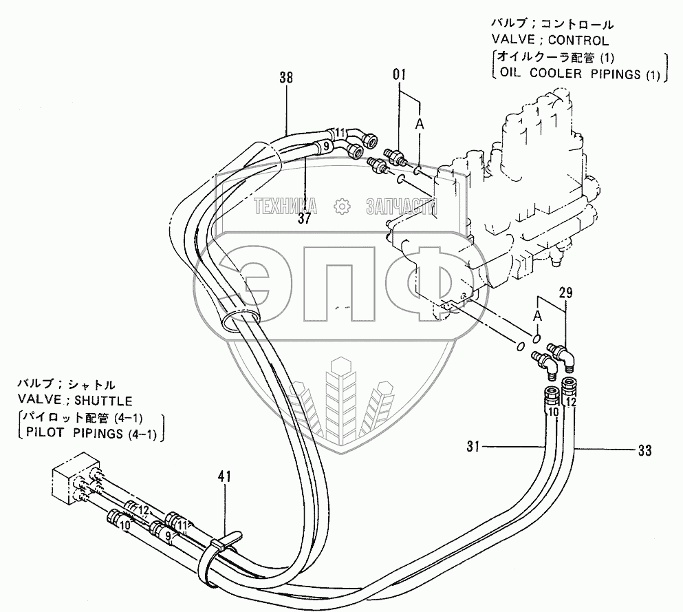 Каталог запасных частей к технике: Hitachi EX-100-2. PILOT PIPINGS (3-3)