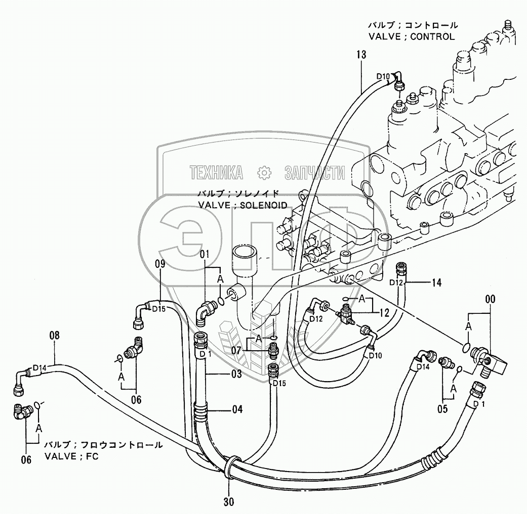 Каталог запасных частей к технике: Hitachi EX-100-2. PILOT PIPINGS (6-1)