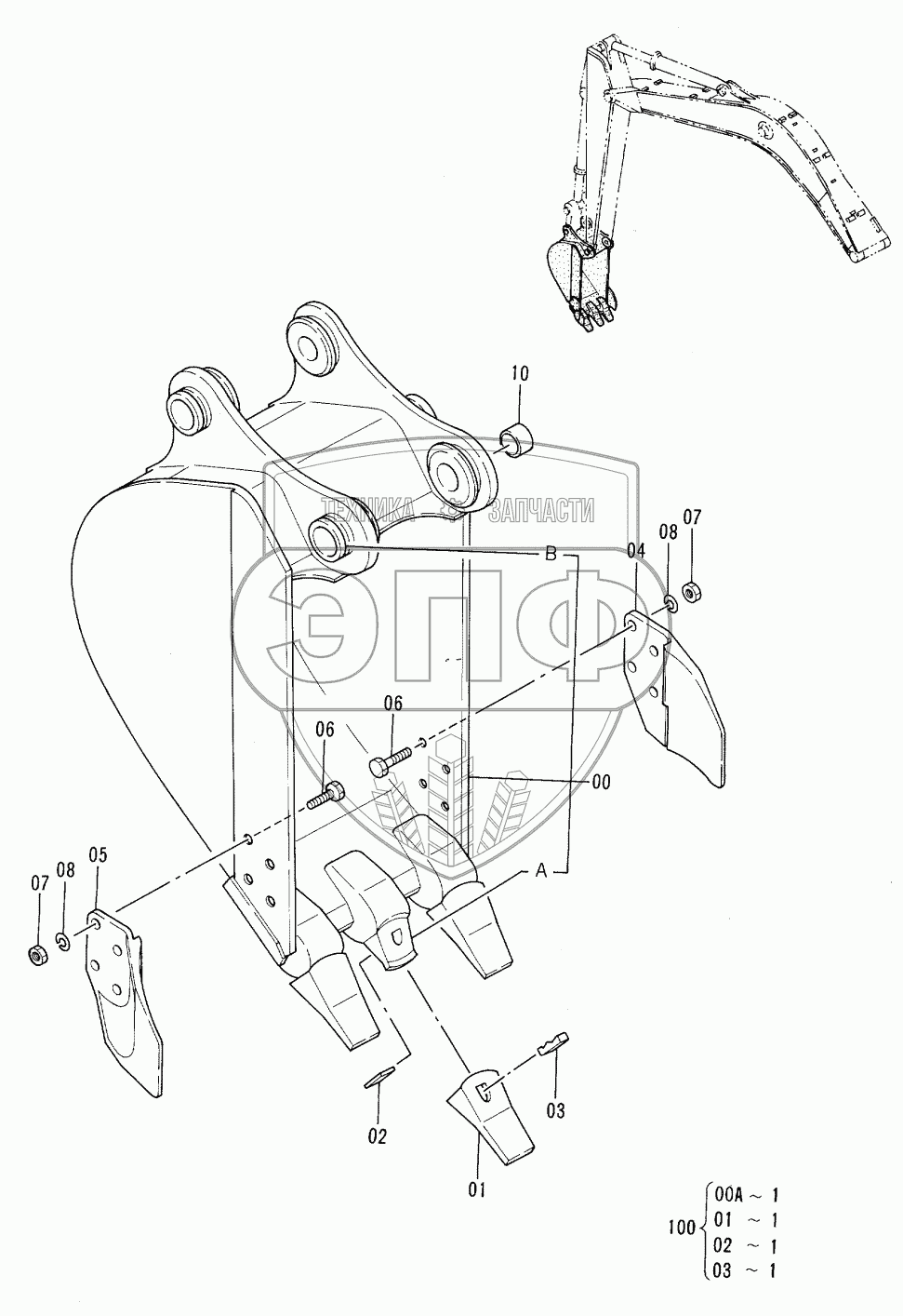 Каталог запасных частей к технике: Hitachi EX-100-3. BUCKET (0.19)<JIS94>