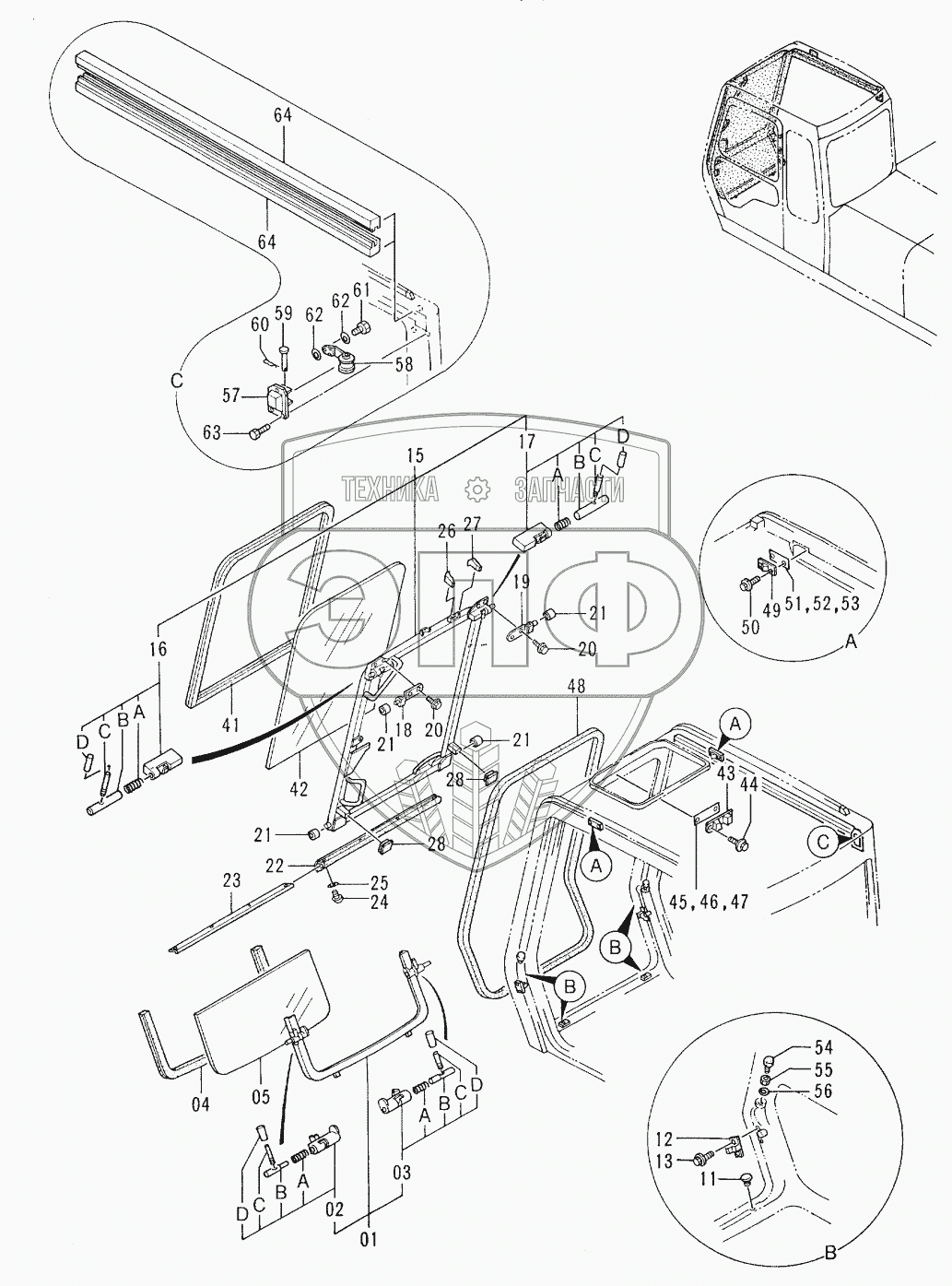 Каталог запасных частей к технике: Hitachi EX-100-3. CAB (2)