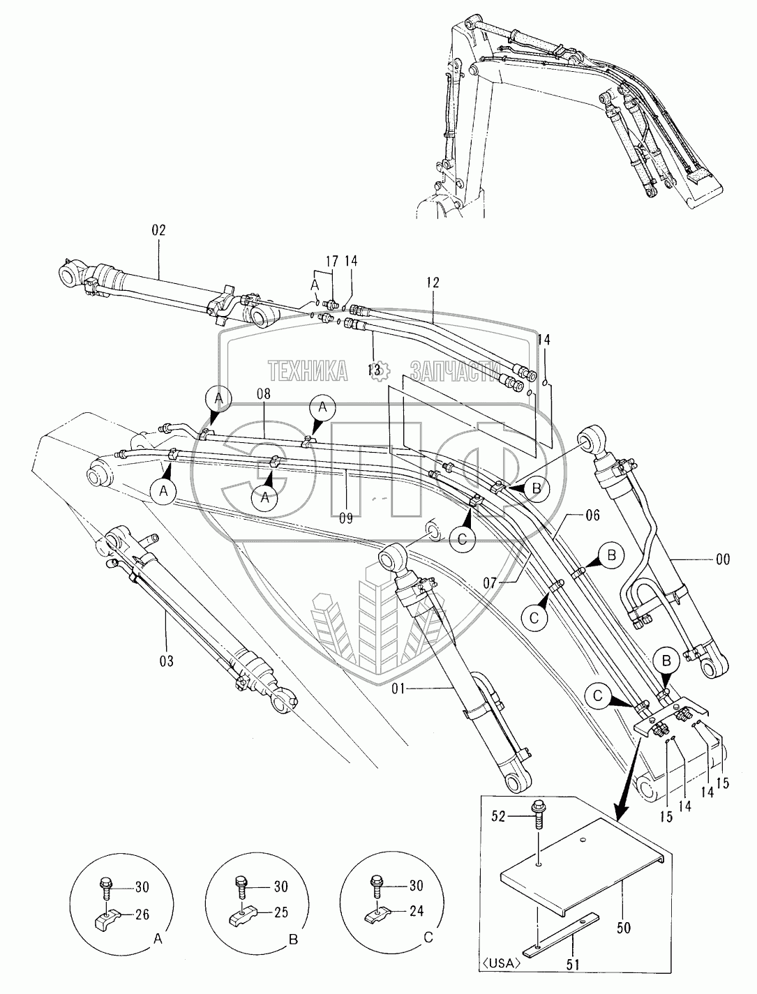 Каталог запасных частей к технике: Hitachi EX-100-3. FRONT PIPINGS (1)