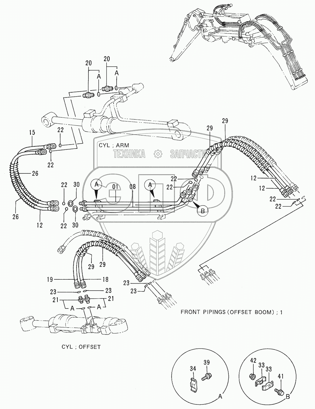Каталог запасных частей к технике: Hitachi EX-100-3. FRONT PIPINGS <OFFSET BOOM> 2