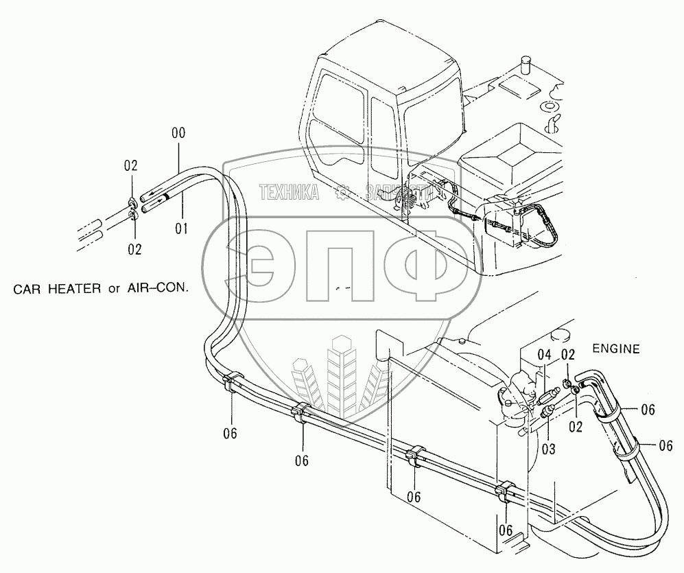 Каталог запасных частей к технике: Hitachi EX-100-3. HEATER PIPINGS