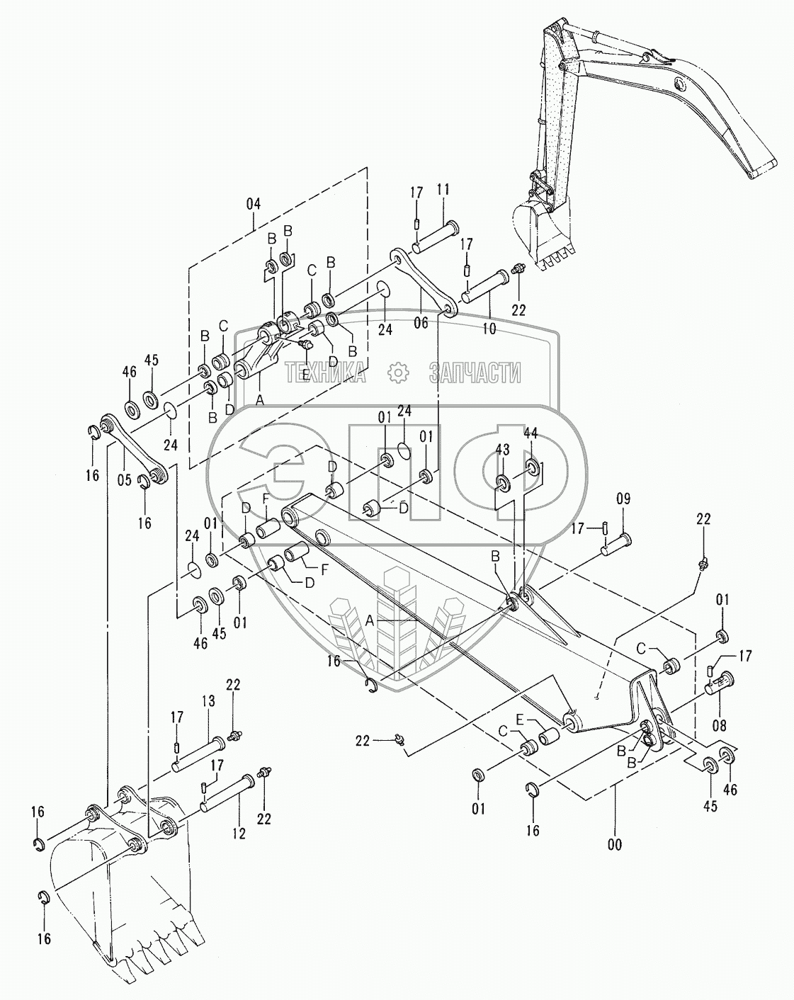 Каталог запасных частей к технике: Hitachi EX-100-3. LONG ARM (2.81M)