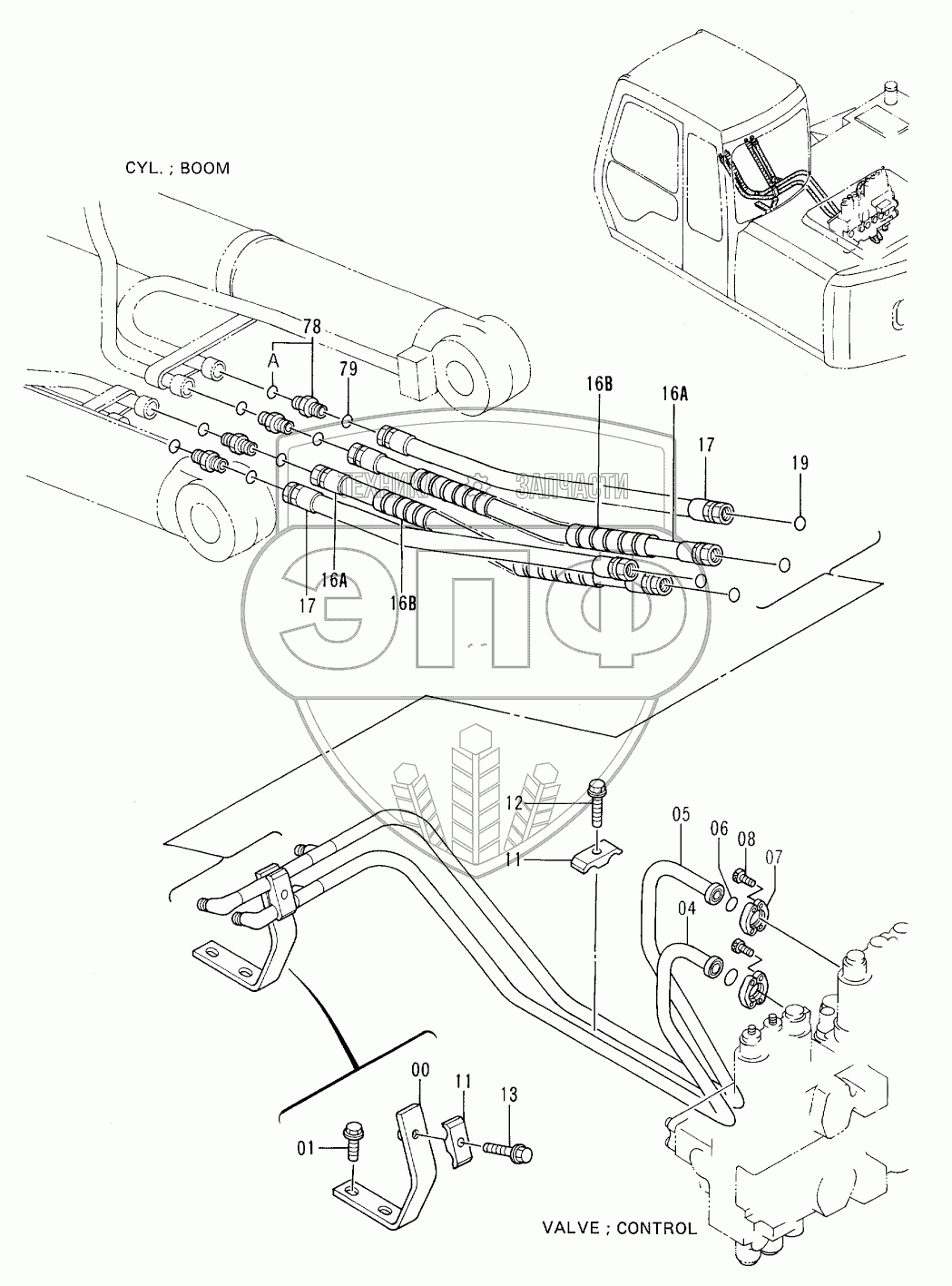 Каталог запасных частей к технике: Hitachi EX-100-3. MAIN PIPINGS (1)