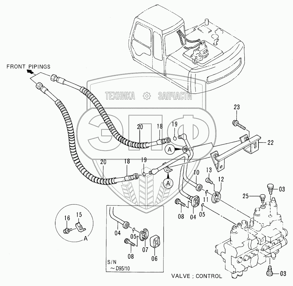 Каталог запасных частей к технике: Hitachi EX-100-3. MAIN PIPINGS <OFFSET BOOM>