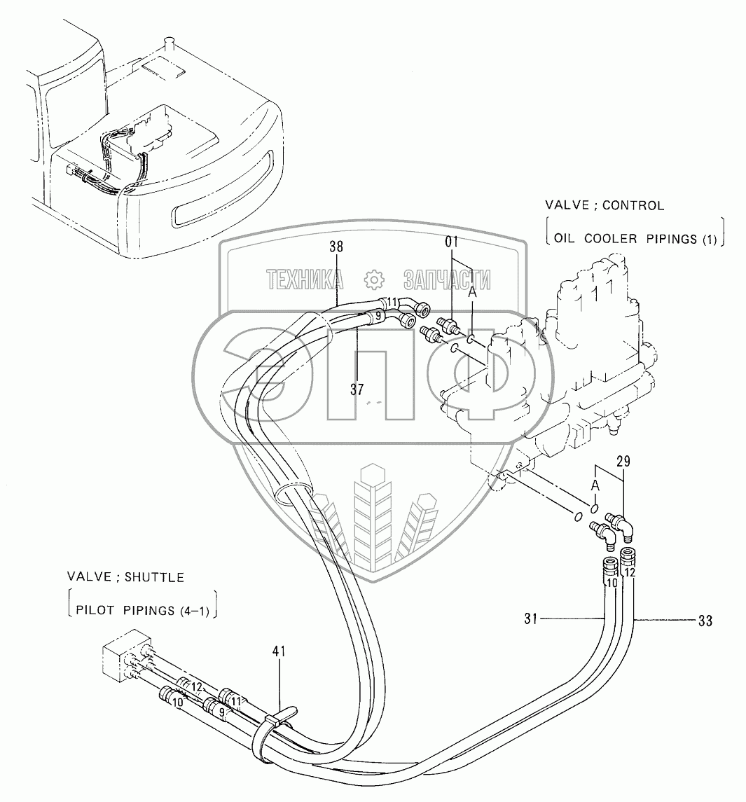 Каталог запасных частей к технике: Hitachi EX-100-3. PILOT PIPINGS (3-3)