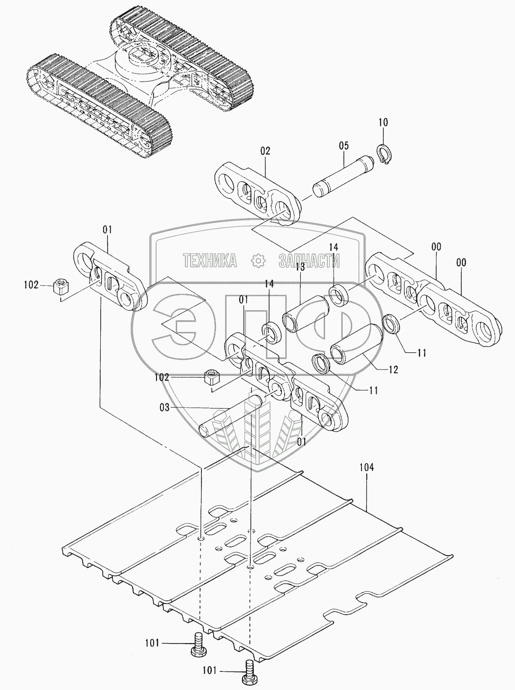 Каталог запасных частей к технике: Hitachi EX-100-3. TRACK-LINK (600G)